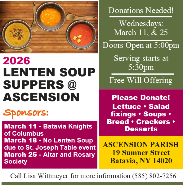 This Penance Service on Sunday, March 22 at 3:00pm will provide a communal way to prepare you for confession. It offers a perfect invitation to receive the Sacrament of Reconciliation ahead of the Easter celebration. Family of Parishes Penance Service is being held at Resurrection – St. Joseph’s site. [303 E. Main St., Batavia, NY]